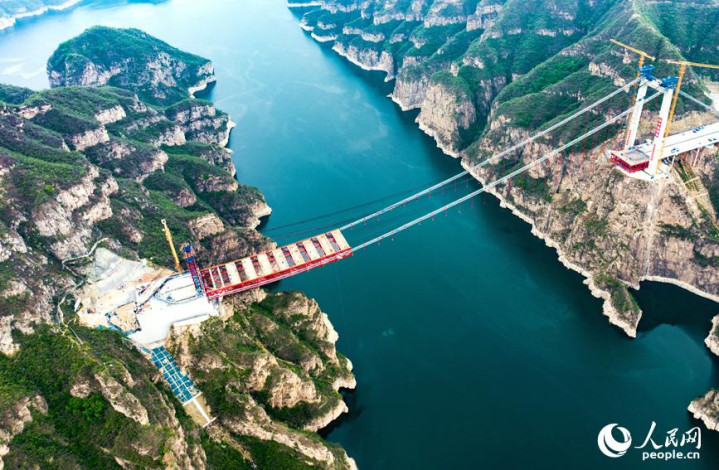 人民网郑州4月26日电(记者王玉兴)4月24日,河南省济源至新安高速公路项目的重要控制性工程——济新黄河大桥施工现场,工人正在紧张架设钢桁梁。大桥计划6月底钢梁合龙,2025年底建成通车。